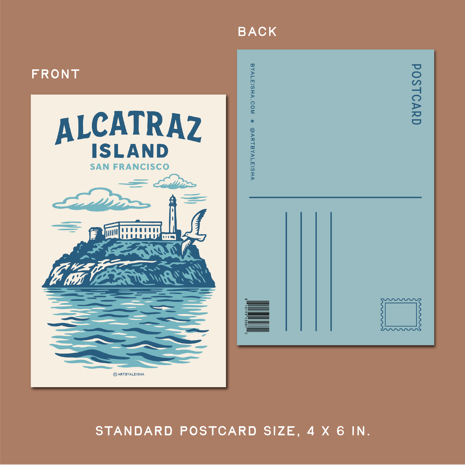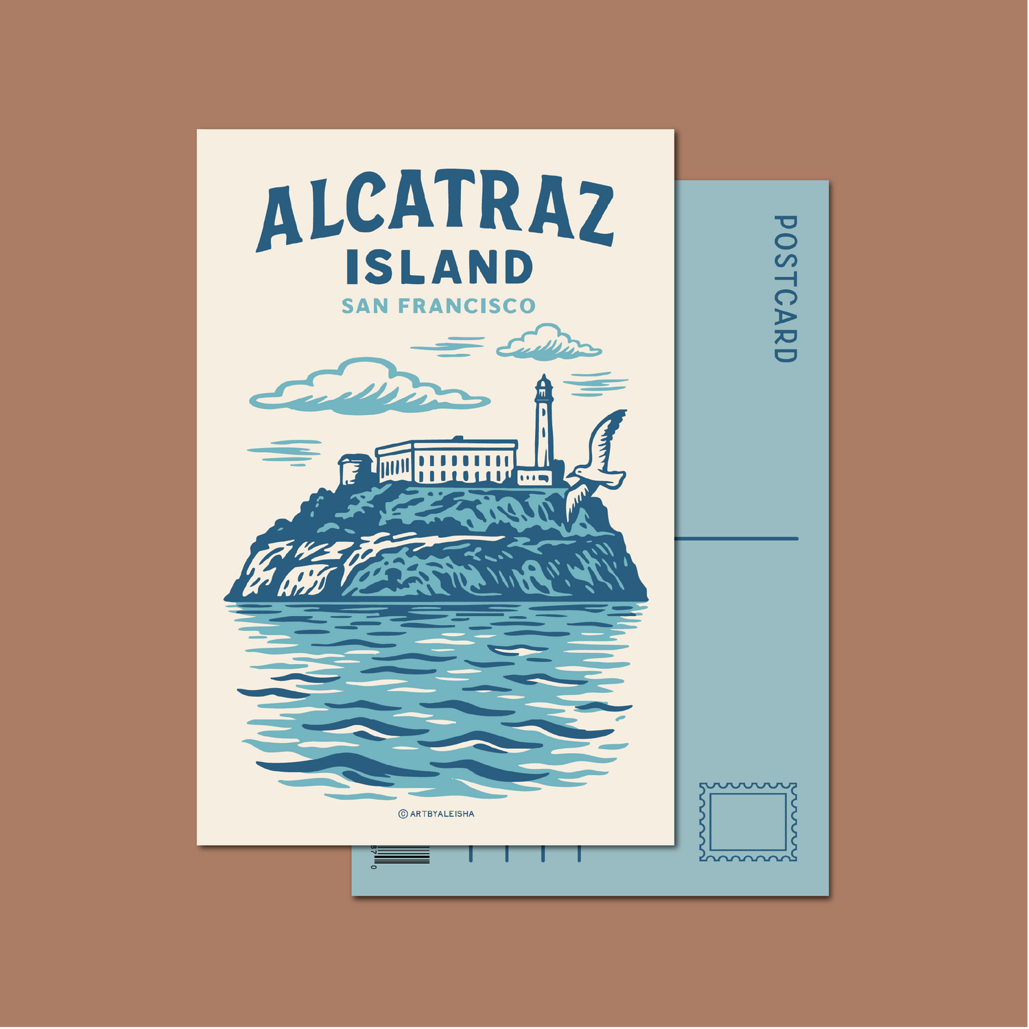 4"x6" postcard featuring Aleisha's illustrated design of the most infamous island off the coast from San Francisco - Alcatraz! Say "I wish you were here" in style!