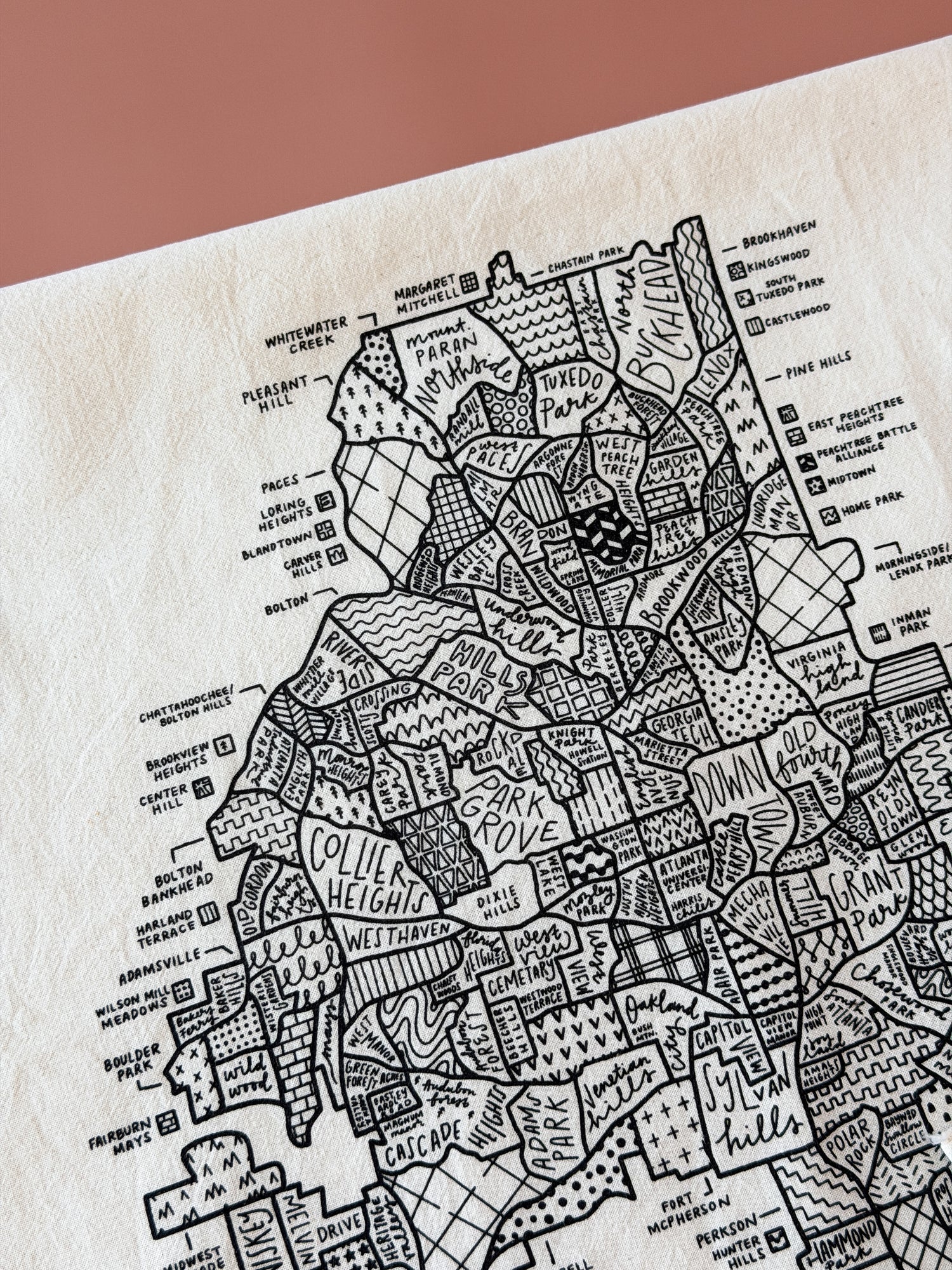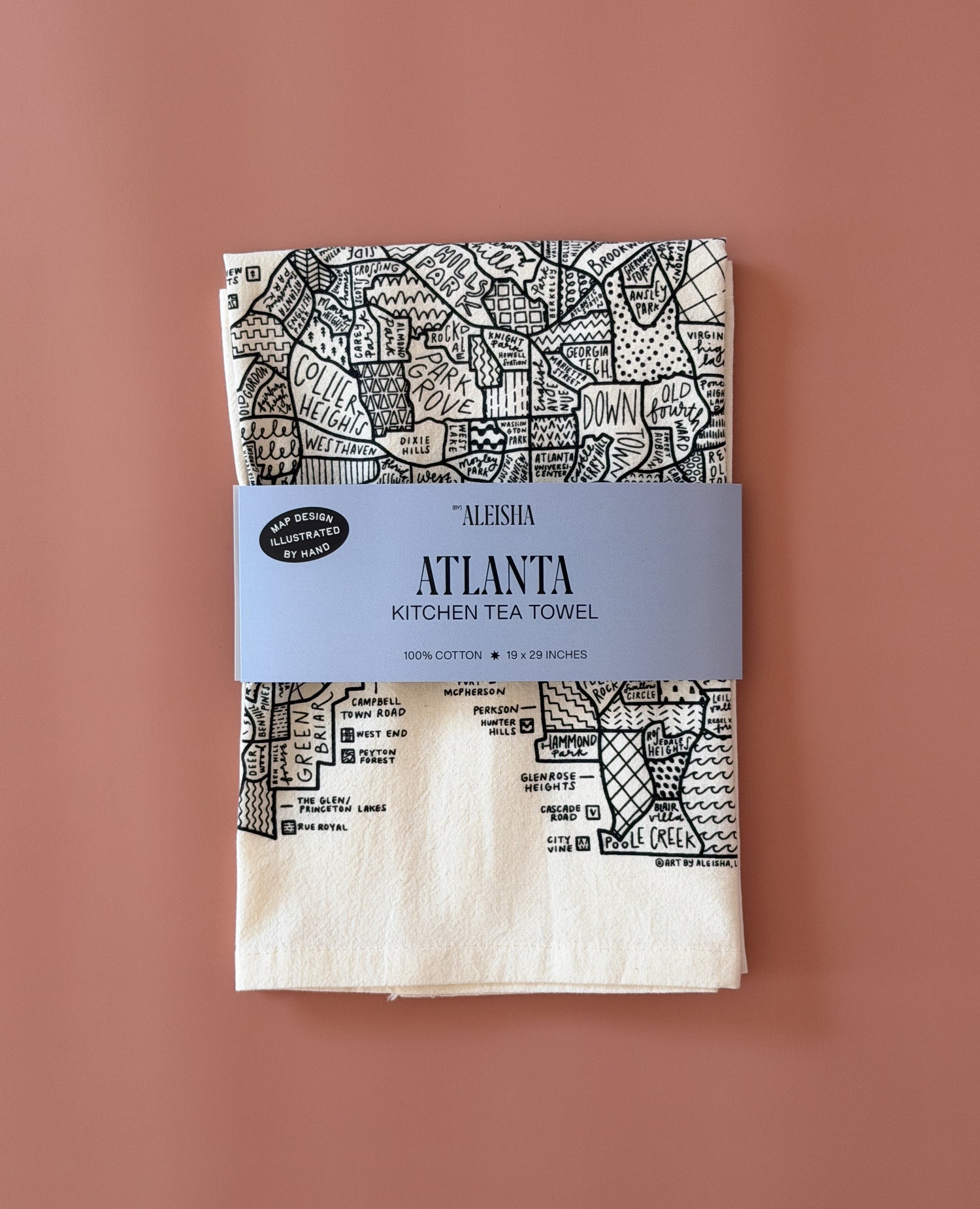 Add a touch of nostalgia and charm to your kitchen with our screen printed tea towels featuring Aleisha's hand-illustrated map designs. Use it to dry dishes, wrap a gift, line a basket full of fruits, or simply put on display to start a conversation about your favorite place. Celebrate the places you love, every day.