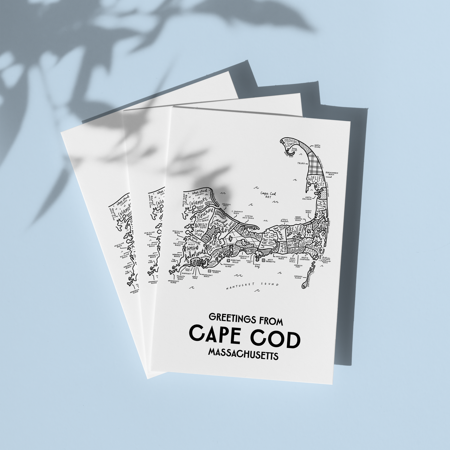 Greeting card featuring Aleisha’s hand-illustrated map design of Cape Cod, Massachussetts.