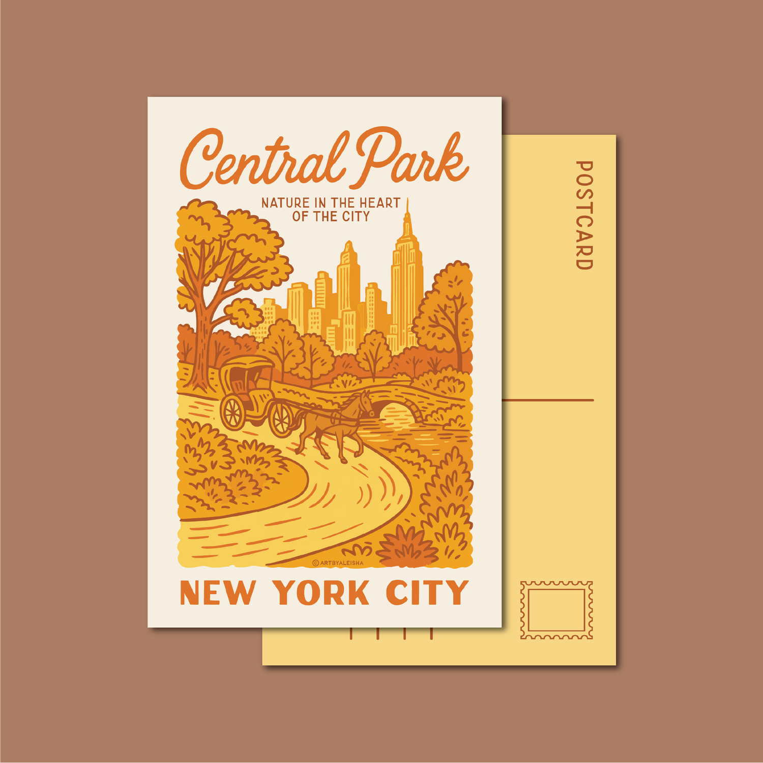 4"x6" postcard featuring Aleisha's design of New York City's Central Park. This design was inspired by retro travel designs. Say "I wish you were here" in style!