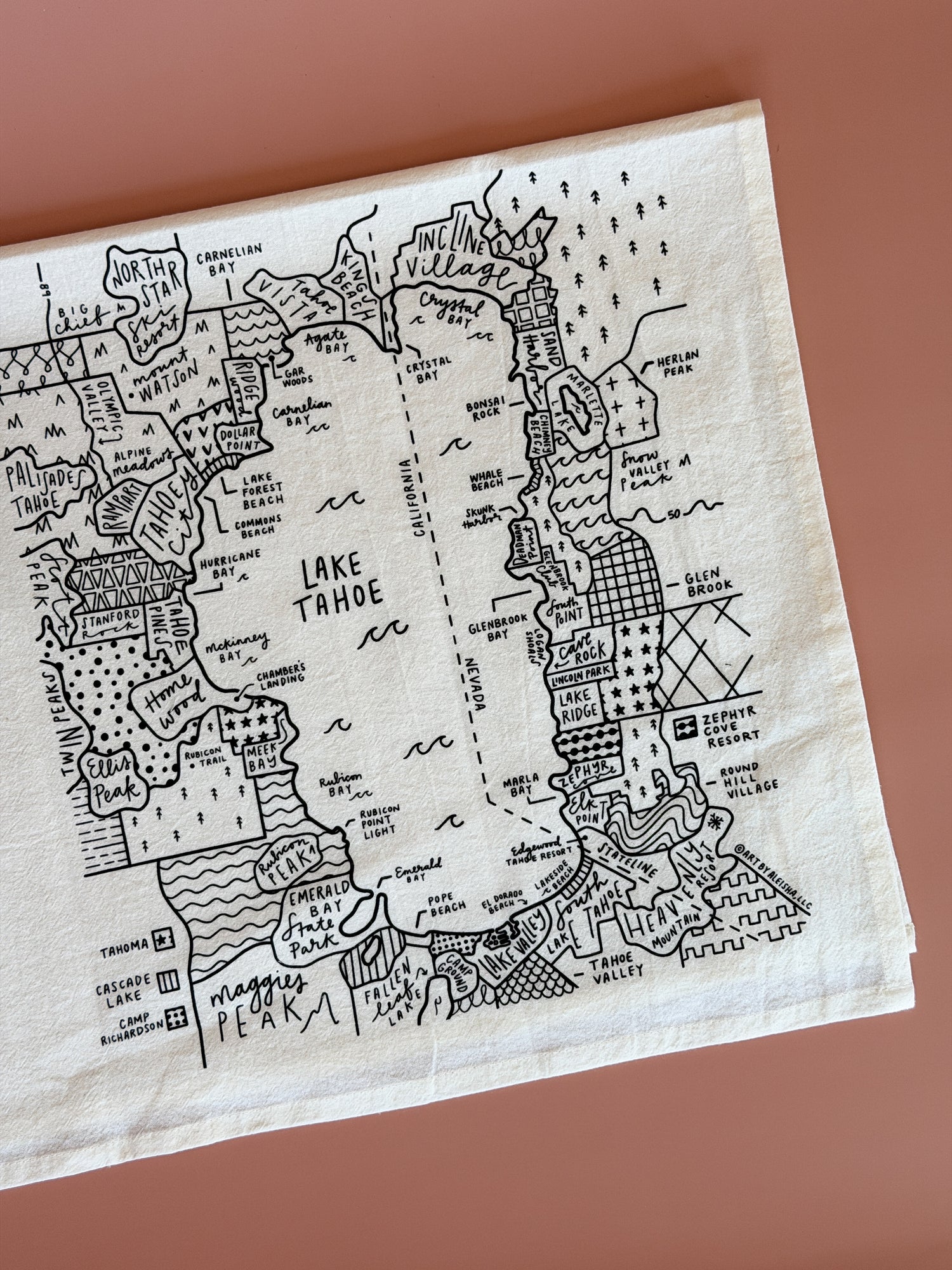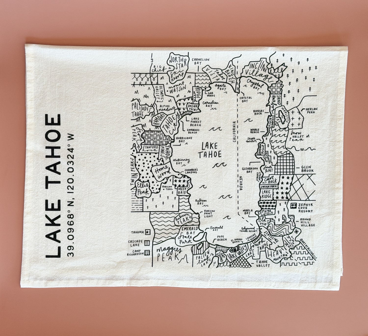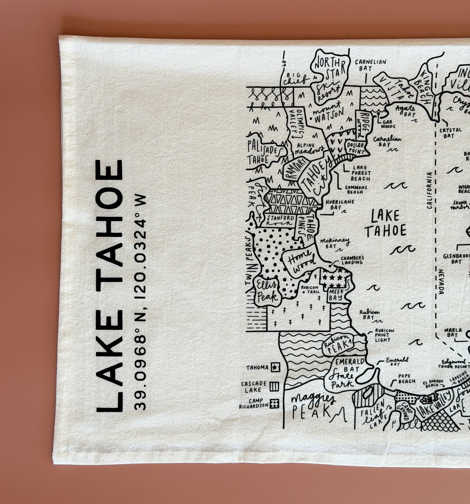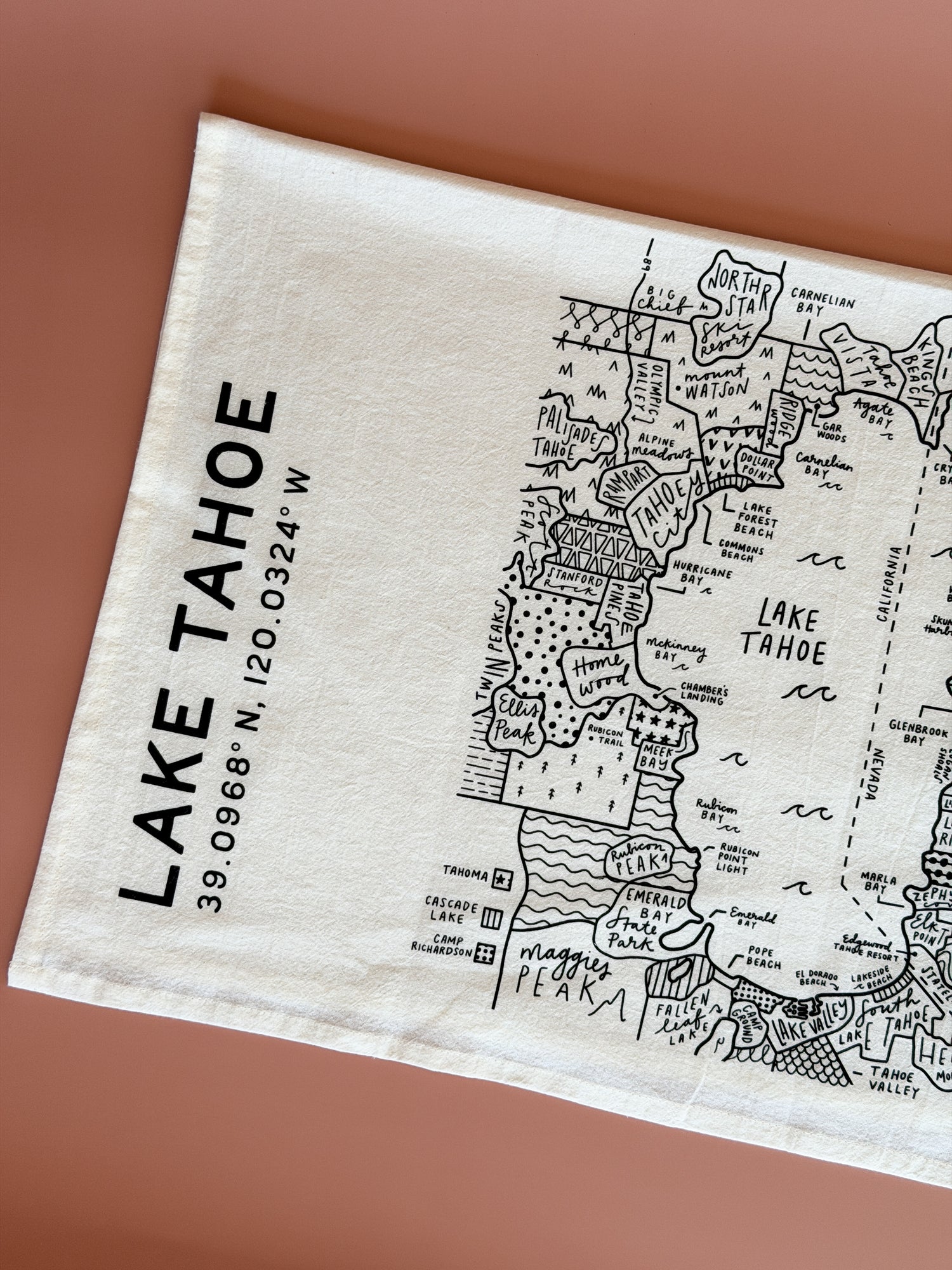 Lake Tahoe Map Tea Towel
