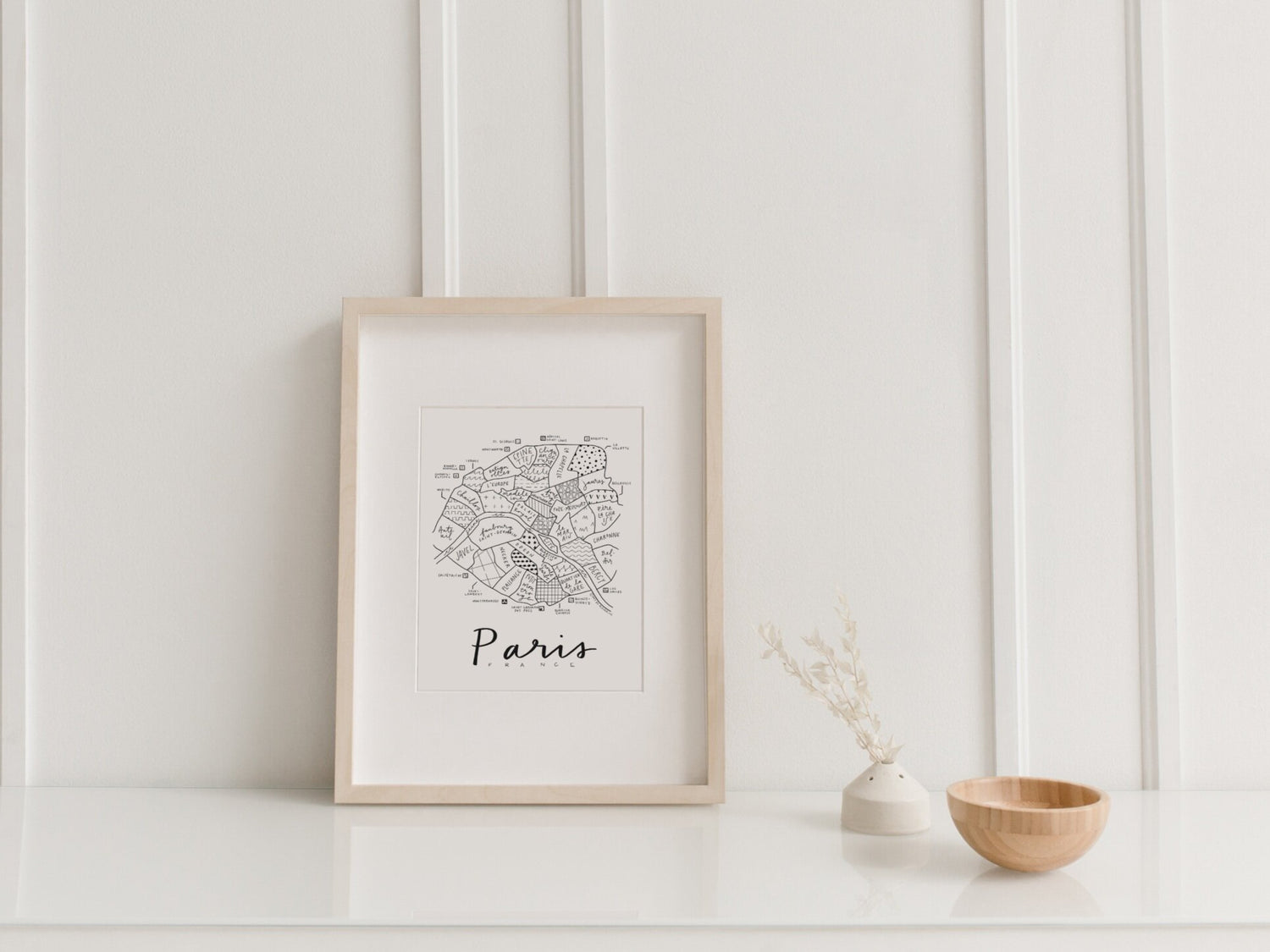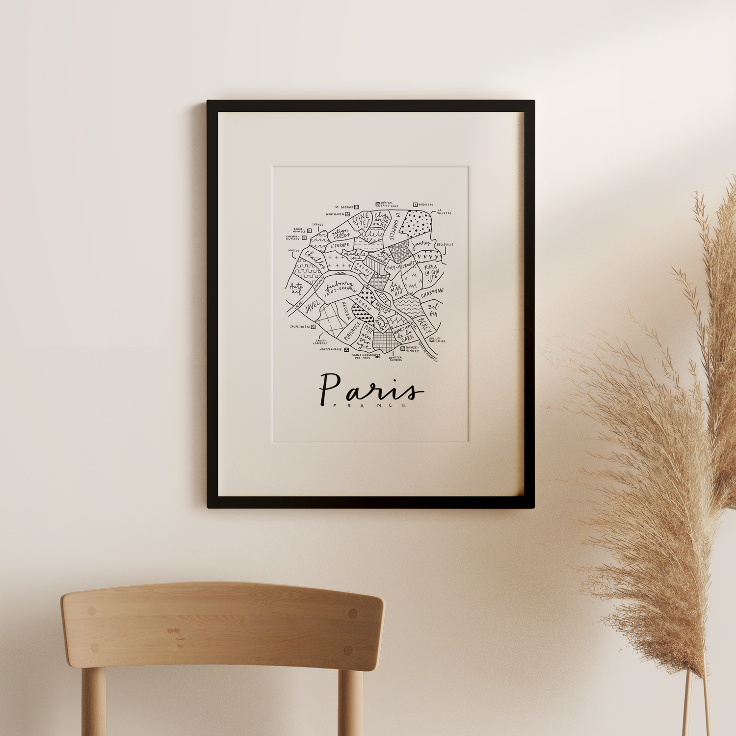 Paris, France Neighborhood Map Print