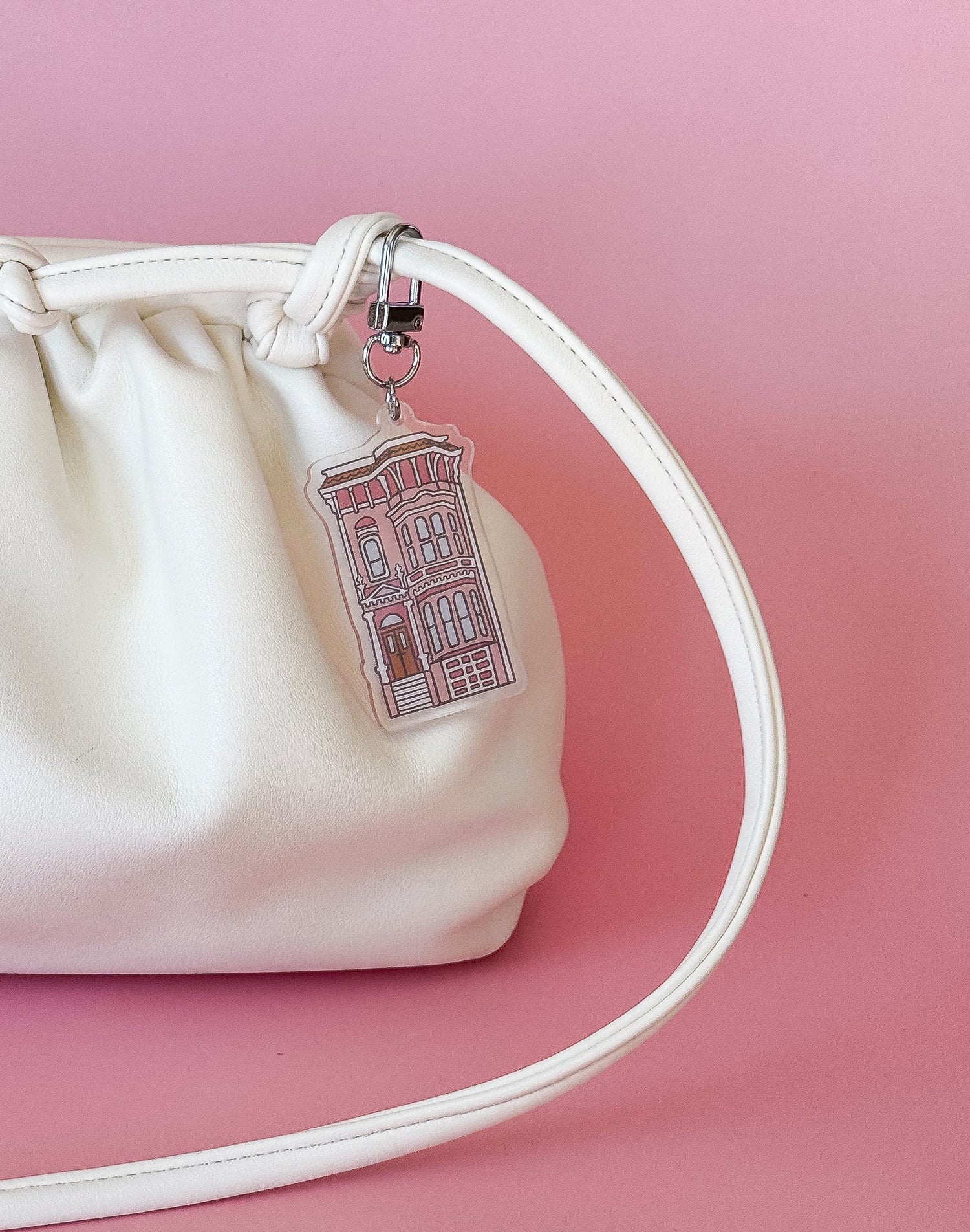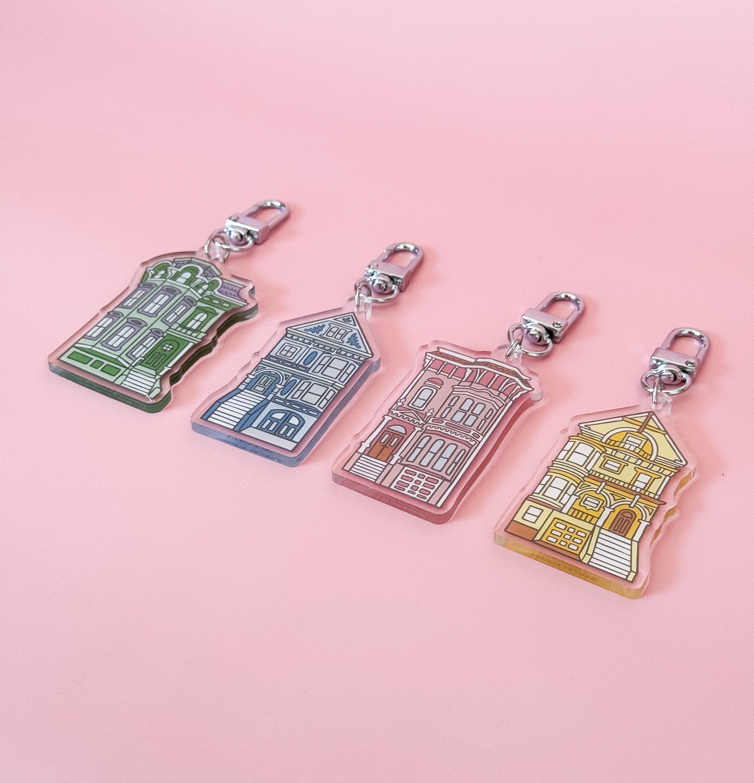 Carry a piece of San Francisco wherever you go! This clear acrylic keychain features Aleisha Nelson’s hand-illustrated design of a charming Painted Lady—a nod to the city’s most iconic row of Victorian homes. Durable, lightweight, and perfectly sized for your keys or bag, it’s a little reminder of the pastel skyline that makes San Francisco so unforgettable. Designed as the perfect keepsake for locals who love their city and visitors who never want to leave it behind.